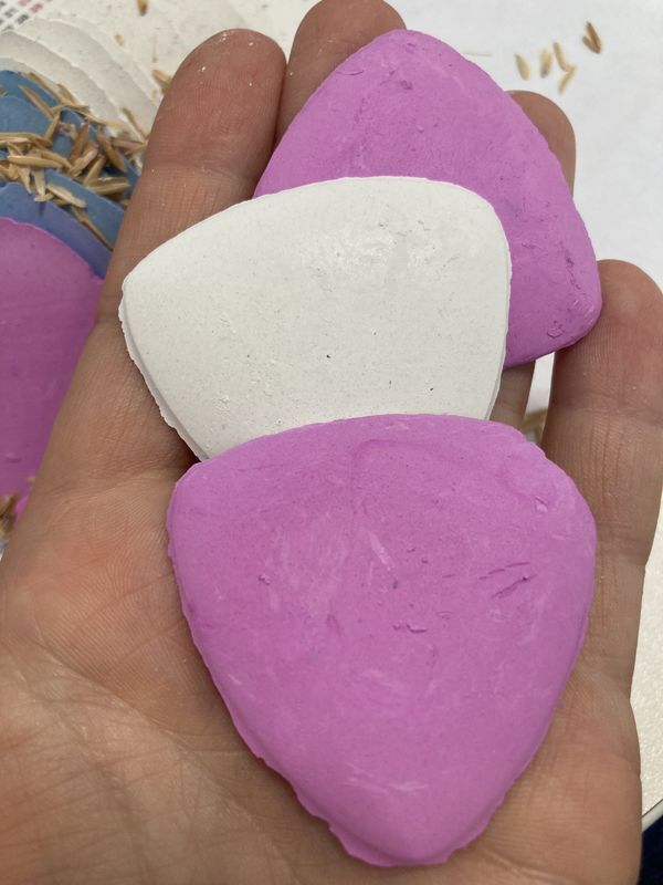 Портновский мел для раскроя ткани. Традиционные округлые мелки на три угла. Изготовлены из известняка, такой состав позволяет легко удалять их следы с любых поверхностей.